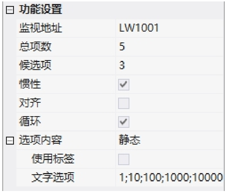 · 变量地址:滚轮选项动态内容的变量地址;