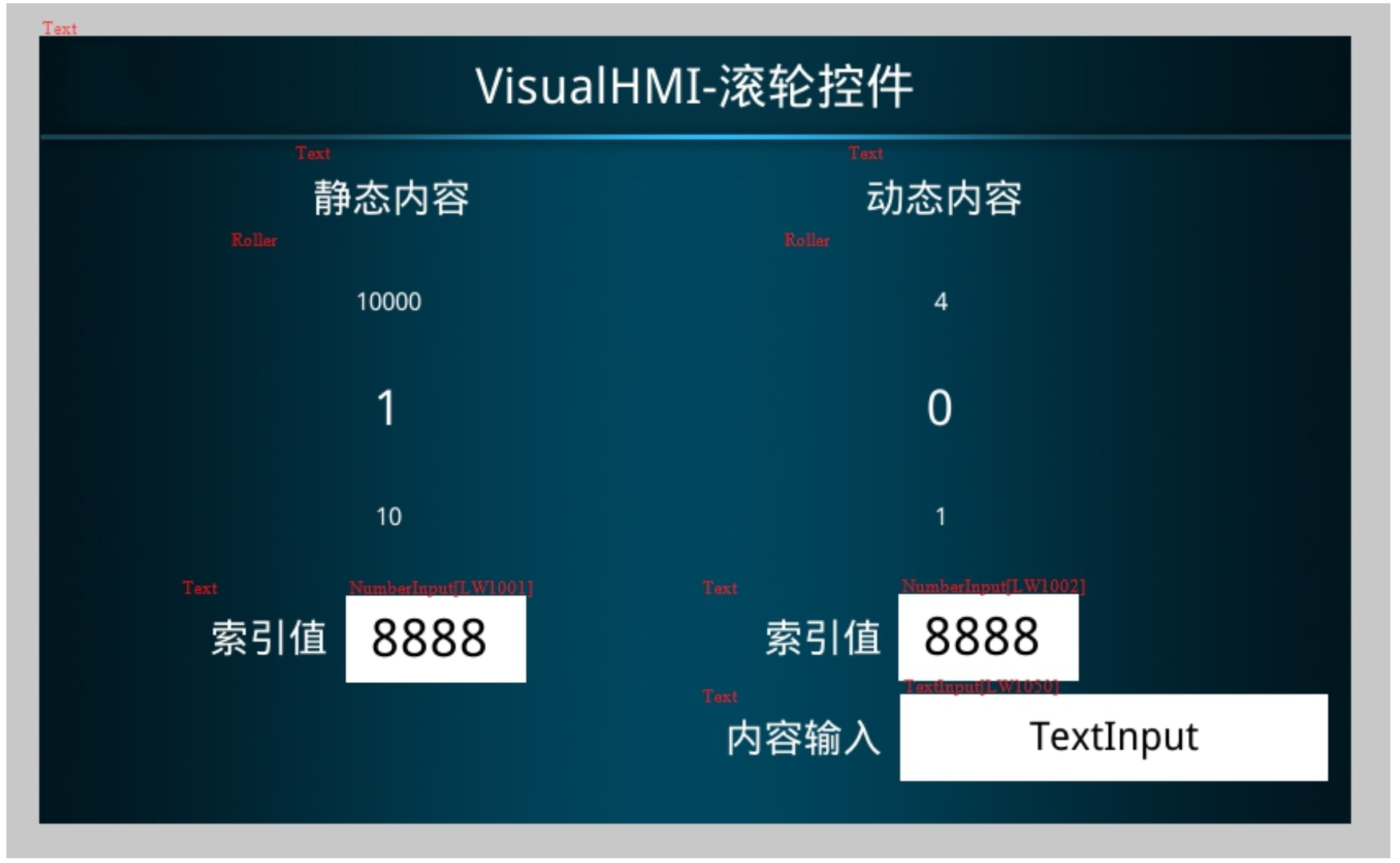 注意:选项内容绑定的寄存器值,初始化默认为0。可以在 lua 脚本的on_init()函数中,初始化动态控件绑定地址的内容,或者弹出键盘手动键值输入。
