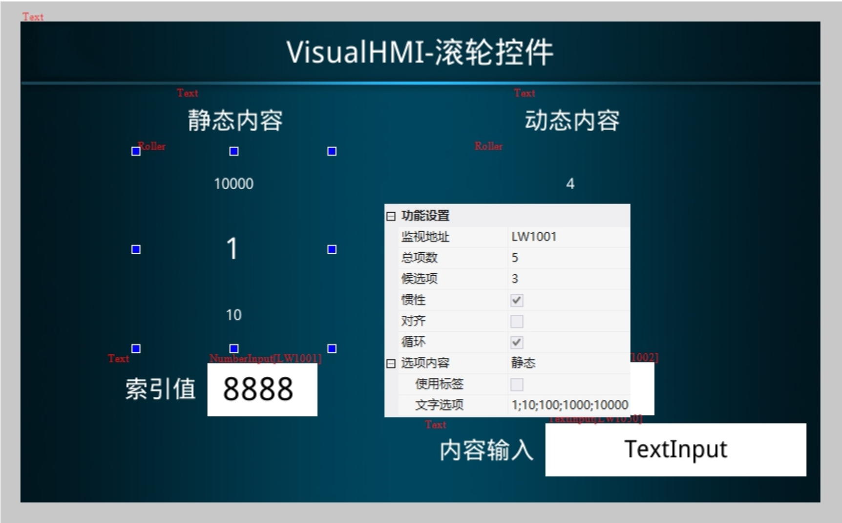 7. 选项内容:设置滚轮的选项内容,可设置静态、动态;